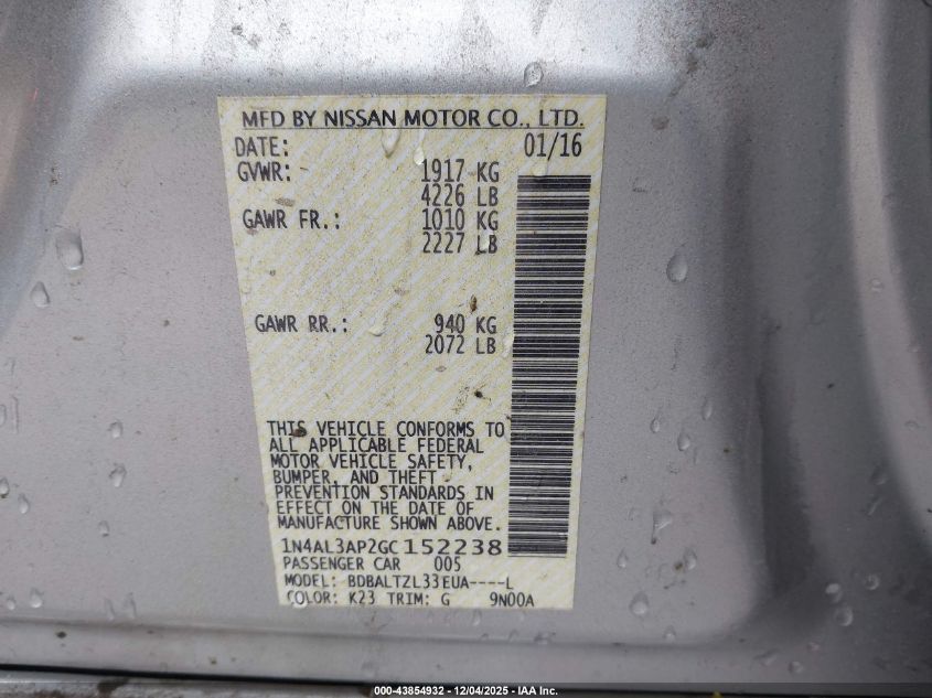2016 NISSAN ALTIMA 2.5