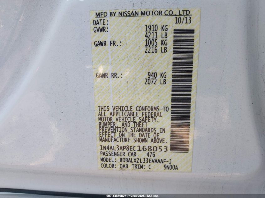 2014 NISSAN ALTIMA 2014 року Бензин, 2.5, Передній привід, vin - 1N4AL3AP8EC168053 з США