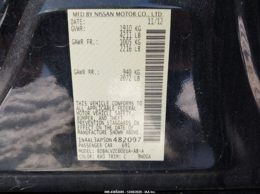 2013 NISSAN ALTIMA 2013 року Бензин, 2.5, Передній привід, vin - 1N4AL3AP5DN482097 з США