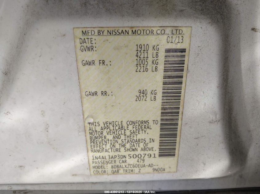 Колір БілийЦиліндри 4Привід Передній привідVIN 1N4AL3AP3DN500791Стан СтаціонарноУшкодження Звичайний знос AutoRIA
