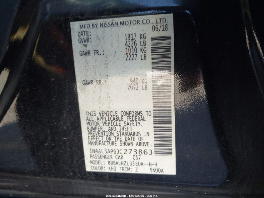 2018 NISSAN ALTIMA 2018 року Бензин, 2.5, Передній привід, vin - 1N4AL3AP6JC273863 з США