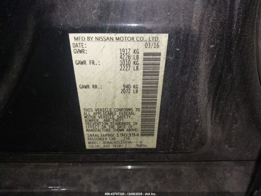 2016 NISSAN ALTIMA 2016 року Бензин, 2.5, Передній привід, vin - 1N4AL3AP8GC190394 з США