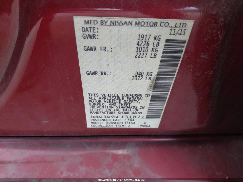 2016 NISSAN ALTIMA 2016 року Бензин, 2.5, Передній привід, vin - 1N4AL3AP7GC131871 з США