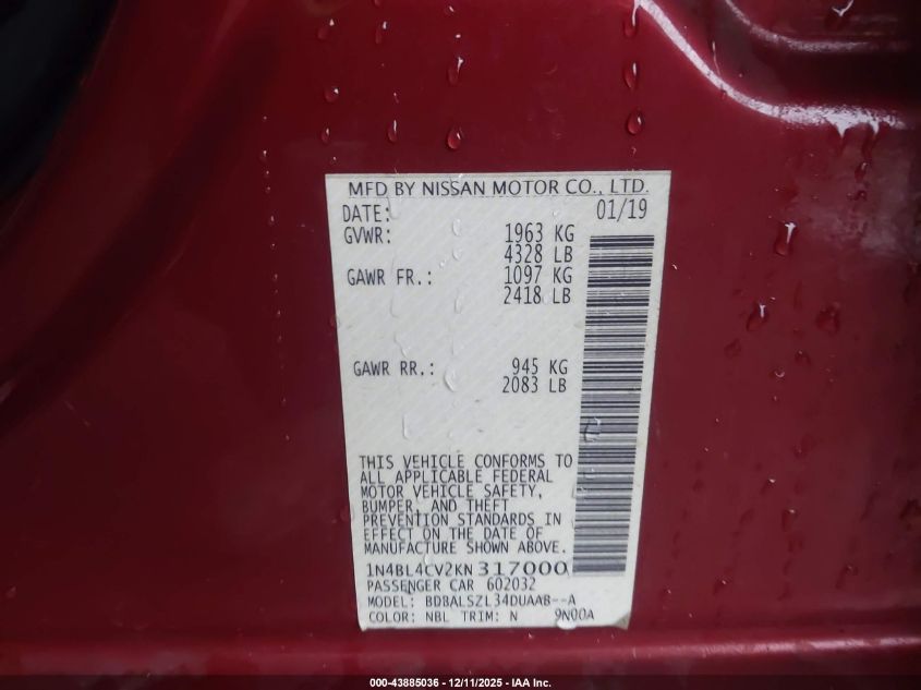 2019 NISSAN ALTIMA 2019 року Бензин, 2.5, Передній привід, vin - 1N4BL4CV2KN317000 з США