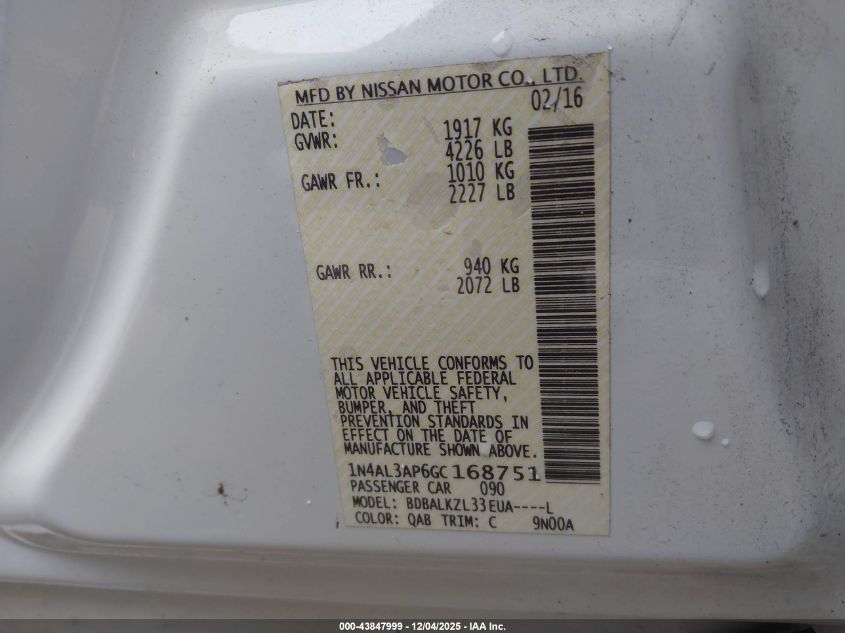 2016 NISSAN ALTIMA 2.5
