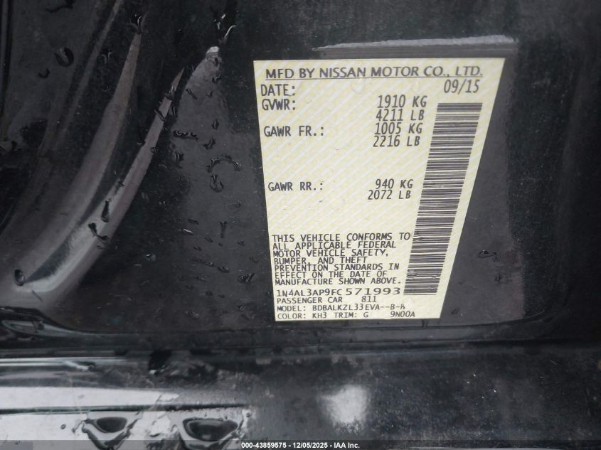 2015 NISSAN ALTIMA 2015 року Бензин, 2.5, Передній привід, vin - 1N4AL3AP9FC571993 з США