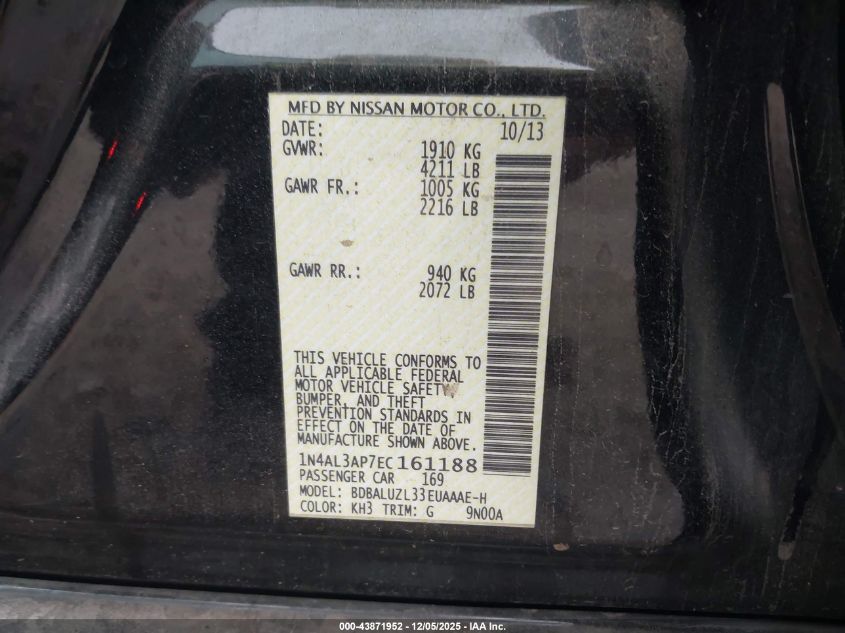 2014 NISSAN ALTIMA 2014 року Бензин, 2.5, Передній привід, vin - 1N4AL3AP7EC161188 з США