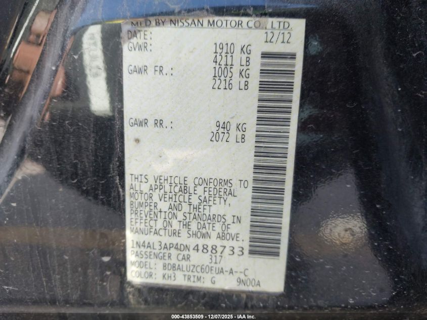 2013 NISSAN ALTIMA 2013 року Бензин, 2.5, Передній привід, vin - 1N4AL3AP4DN488733 з США
