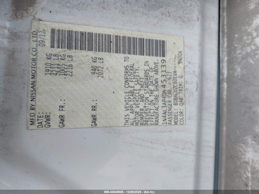 Колір БілийЦиліндри 4Привід Передній привідVIN 1N4AL3AP4DN453139Стан Заводиться та їде (перевірено)Ушкодження Передня права AutoRIA