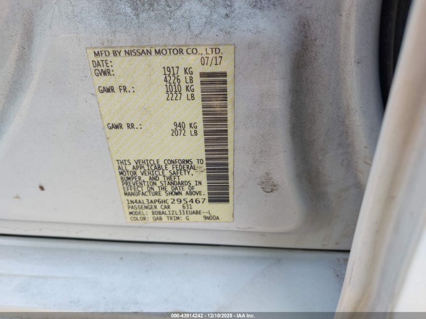 2017 NISSAN ALTIMA 2017 року Бензин, 2.5, Передній привід, vin - 1N4AL3AP6HC295467 з США