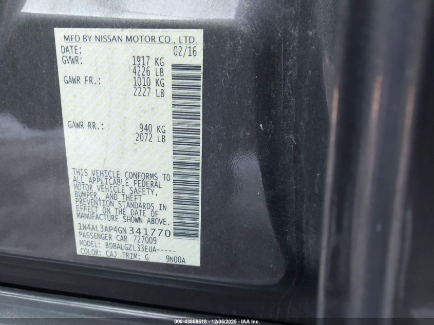 2016 NISSAN ALTIMA 2016 року Бензин, 2.5, Передній привід, vin - 1N4AL3AP4GN341770 з США
