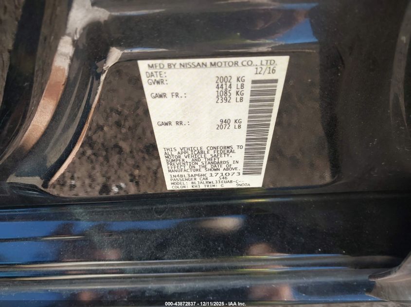 2017 NISSAN ALTIMA 2017 року Бензин, 3.5, Передній привід, vin - 1N4BL3AP6HC171073 з США