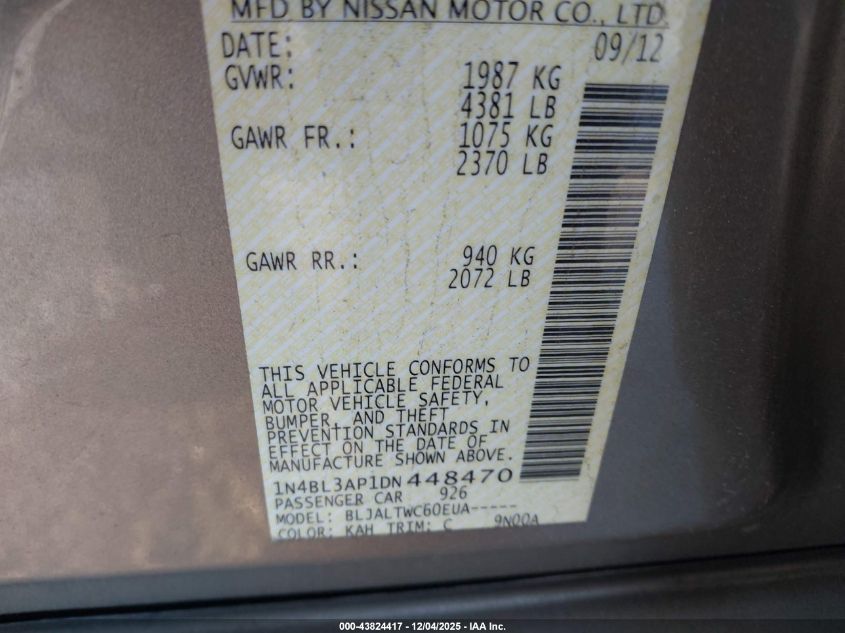 2013 NISSAN ALTIMA 2013 року Бензин, 3.5, Передній привід, vin - 1N4BL3AP1DN448470 з США