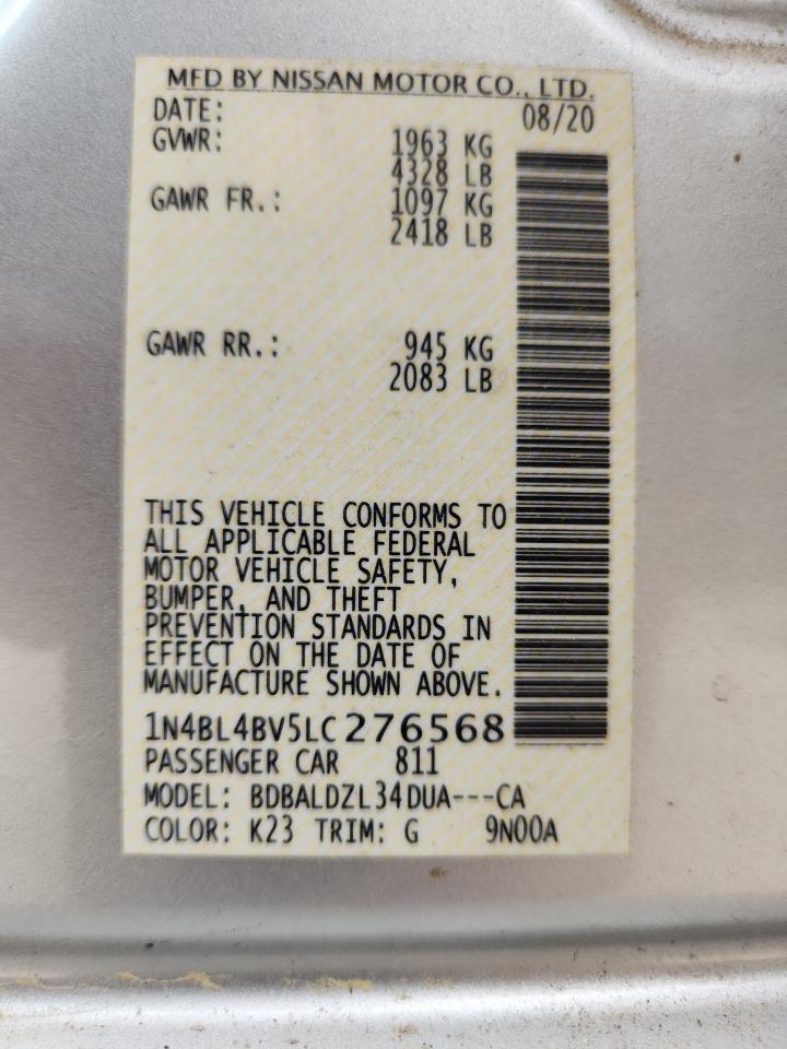2020 NISSAN ALTIMA 2020 року Бензин, 2.5, , vin - 1N4BL4BV5LC276568 з США