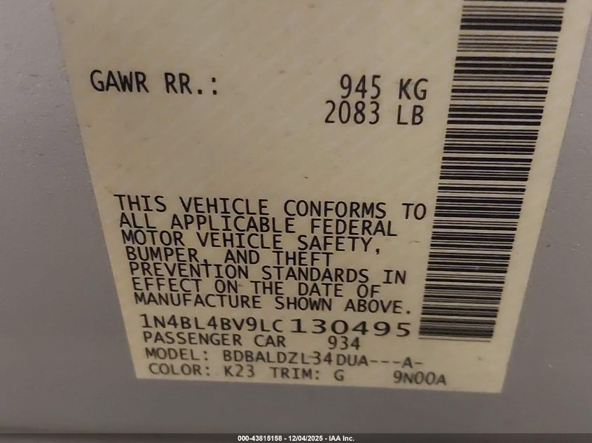 2020 NISSAN ALTIMA 2020 року Бензин, 2.5, Передній привід, vin - 1N4BL4BV9LC130495 з США