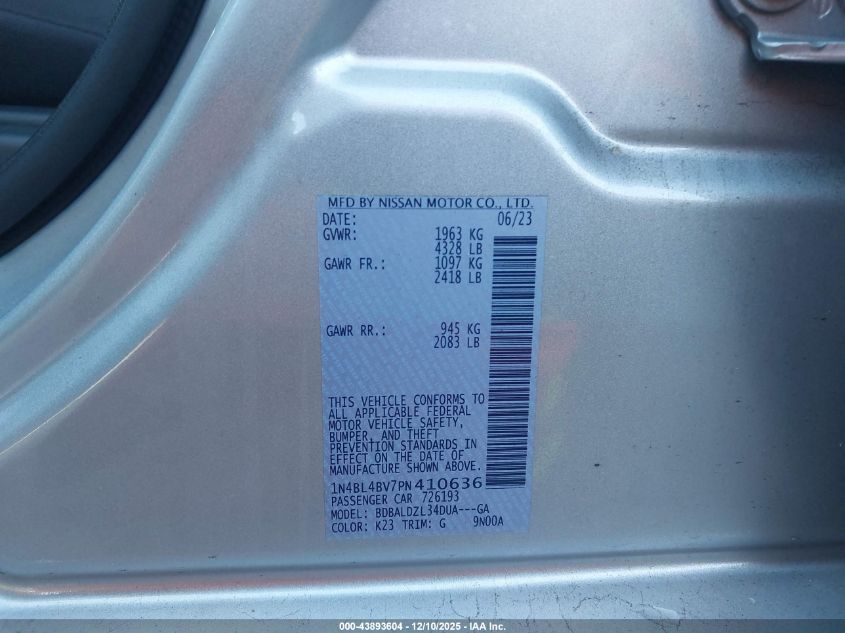 2023 NISSAN ALTIMA 2023 року Бензин, 2.5, Передній привід, vin - 1N4BL4BV7PN410636 з США