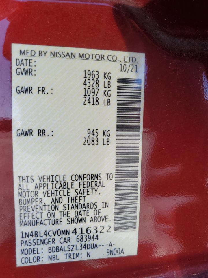 2021 NISSAN ALTIMA 2021 року Бензин, 2.5, , vin - 1N4BL4CV0MN416322 з США