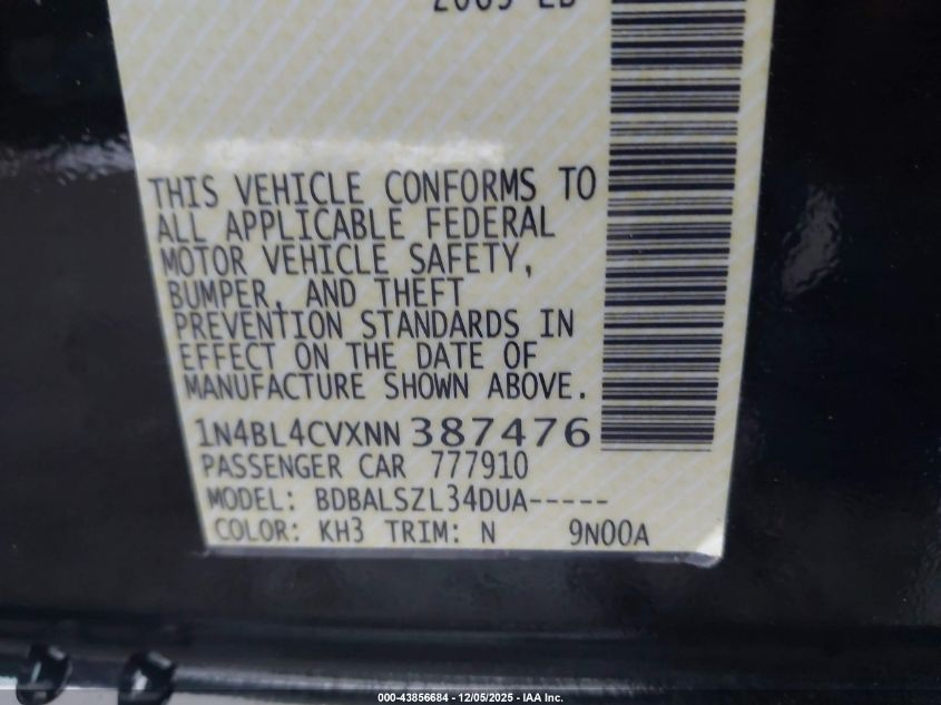Колір ЧорнийЦиліндри 4Привід Передній привідVIN 1N4BL4CVXNN387476Стан Заводиться та їде (перевірено)Ушкодження Ліва сторона AutoRIA