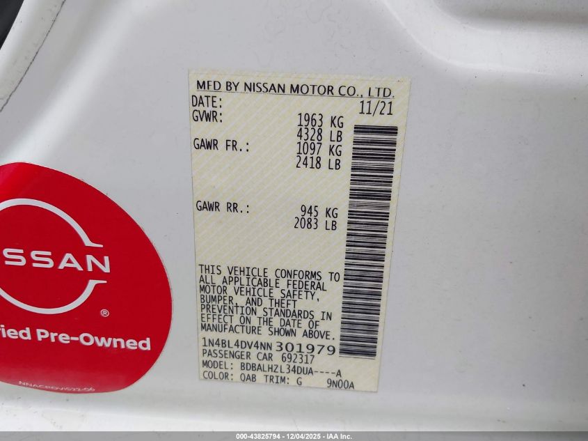 2022 NISSAN ALTIMA SL