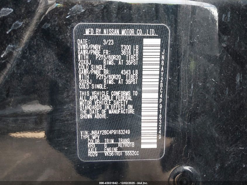 2023 NISSAN ARMADA 2023 року Бензин, 5.6, , vin - JN8AY2BC4P9183249 з США