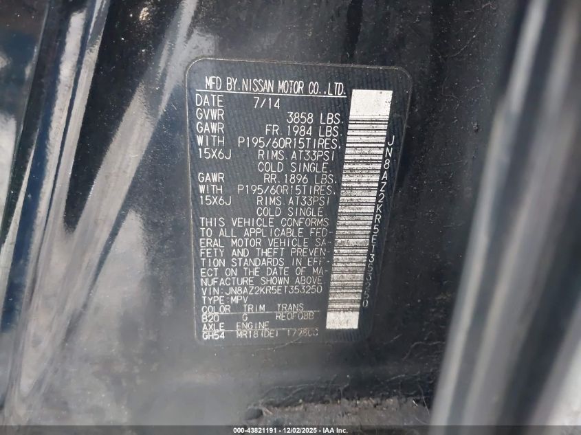 2014 NISSAN CUBE 2014 року Бензин, 1.8, Передній привід, vin - JN8AZ2KR5ET353250 з США