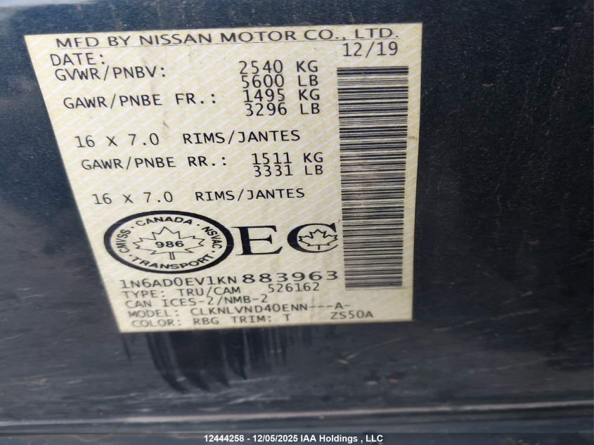 2019 NISSAN FRONTIER 2019 року Бензин, , Повний привід, vin - 1N6AD0EV1KN883963 з США