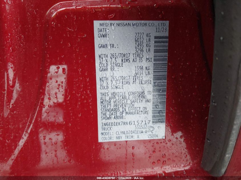 2024 NISSAN FRONTIER 2024 року Бензин, 3.8, Повний привід, vin - 1N6ED1EK7RN615717 з США