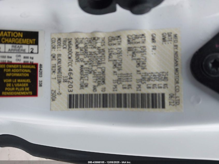 2012 NISSAN FRONTIER 2012 року Бензин, 4.0, Повний привід, vin - 1N6AD0CW7CC464203 з США