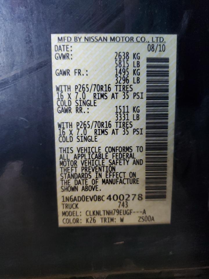 2011 NISSAN FRONTIER 2011 року Бензин, 4.0, 4x4 з заднім приводом, vin - 1N6AD0EV0BC400278 з США