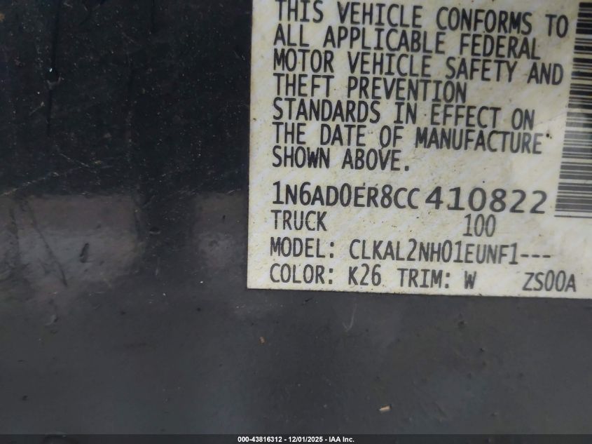 Колір СірийЦиліндри 6VIN 1N6AD0ER8CC410822Стан СтаціонарноУшкодження Передня або задняДата аукціону 2025-12-11 AutoRIA