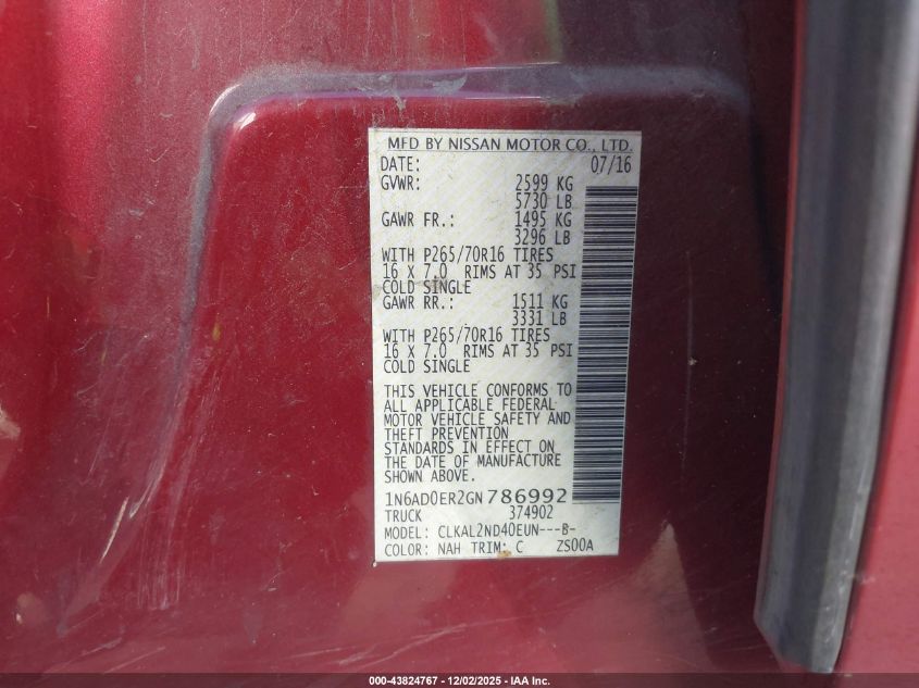 2016 NISSAN FRONTIER 2016 року Бензин, 4.0, , vin - 1N6AD0ER2GN786992 з США