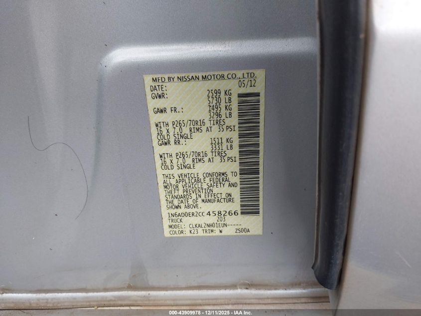 2012 NISSAN FRONTIER 2012 року Бензин, 4.0, , vin - 1N6AD0ER2CC458266 з США