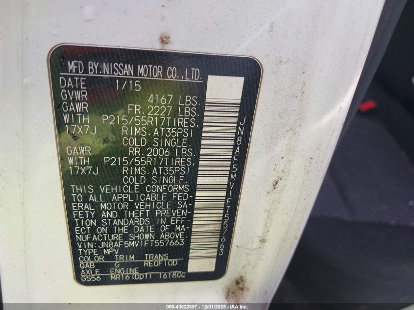 2015 NISSAN JUKE 2015 року Бензин, 1.6, Повний привід, vin - JN8AF5MV1FT557663 з США