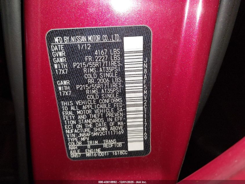 2012 NISSAN JUKE 2012 року Бензин, 1.6, Повний привід, vin - JN8AF5MV2CT117169 з США