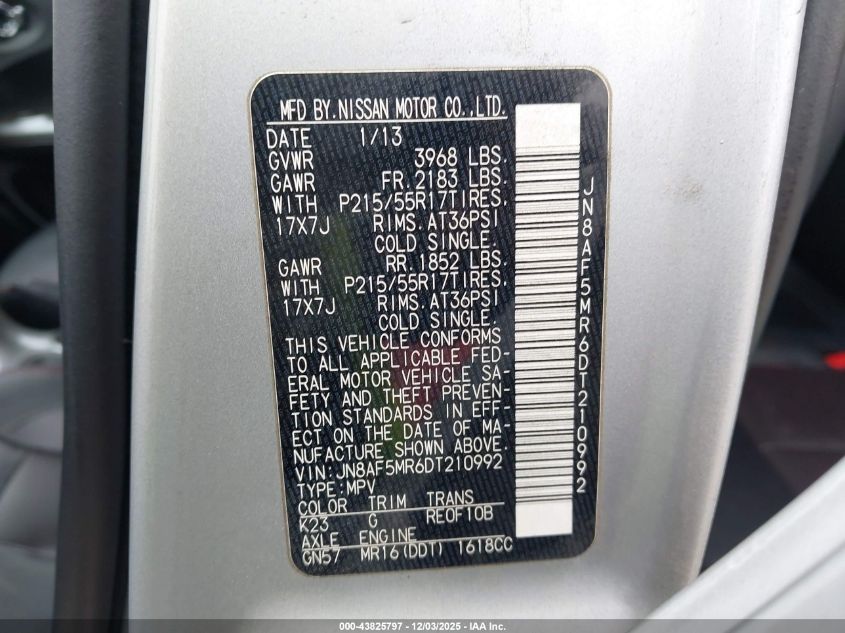 2013 NISSAN JUKE 2013 року Бензин, 1.6, Передній привід, vin - JN8AF5MR6DT210992 з США