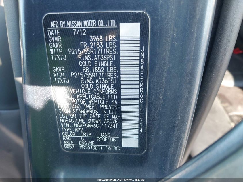 2012 NISSAN JUKE 2012 року Бензин, 1.6, Передній привід, vin - JN8AF5MR6CT117341 з США