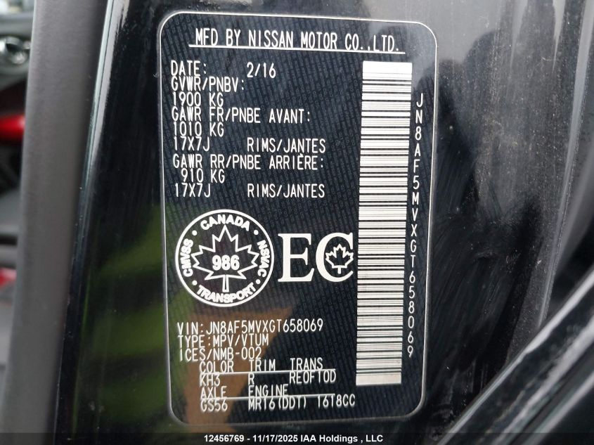 2016 NISSAN JUKE 2016 року Бензин, , Повний привід, vin - JN8AF5MVXGT658069 з США