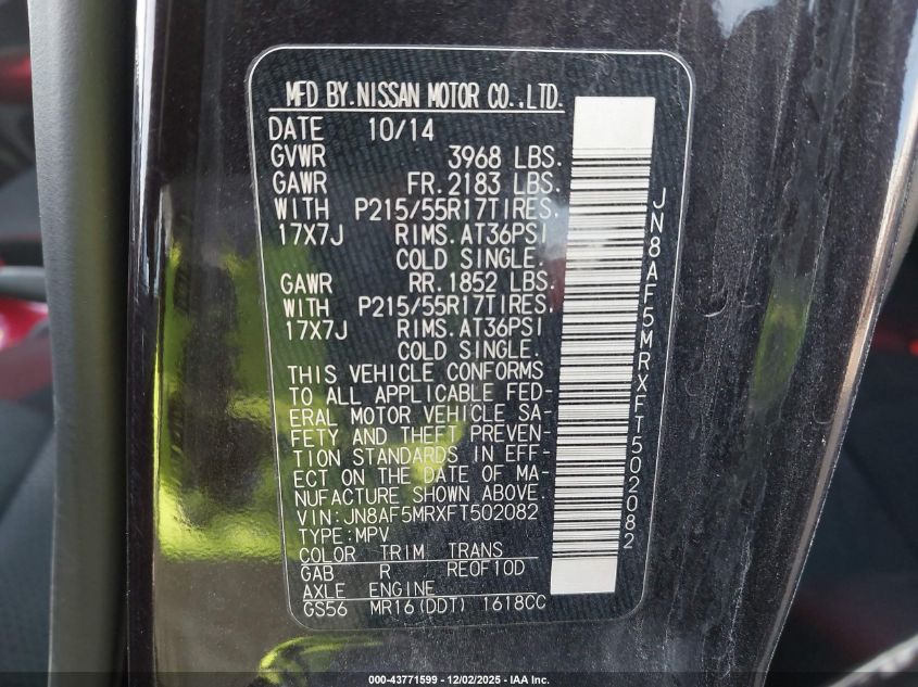 2015 NISSAN JUKE 2015 року Бензин, 1.6, Передній привід, vin - JN8AF5MRXFT502082 з США