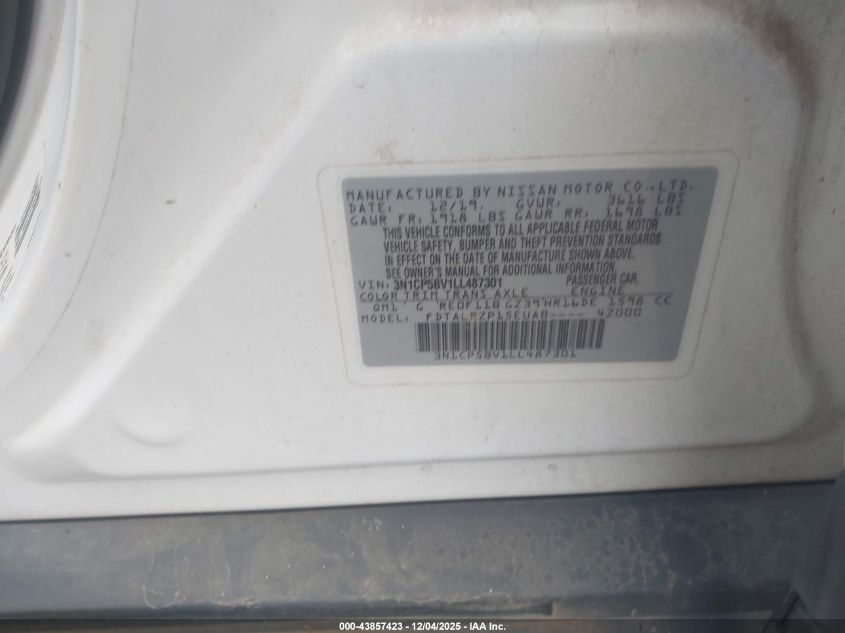 2020 NISSAN KICKS 2020 року Бензин, 1.6, Передній привід, vin - 3N1CP5BV1LL487301 з США
