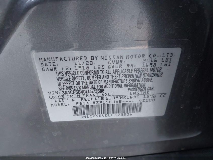 2020 NISSAN KICKS 2020 року Бензин, 1.6, Передній привід, vin - 3N1CP5BV0LL573506 з США
