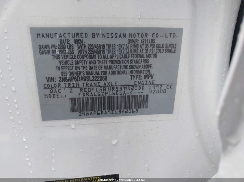 2025 NISSAN KICKS 2025 року Бензин, 2.0, Передній привід, vin - 3N8AP6DA9SL322068 з США
