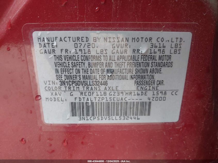 2020 NISSAN KICKS 2020 року Бензин, 1.6, Передній привід, vin - 3N1CP5DV5LL532446 з США