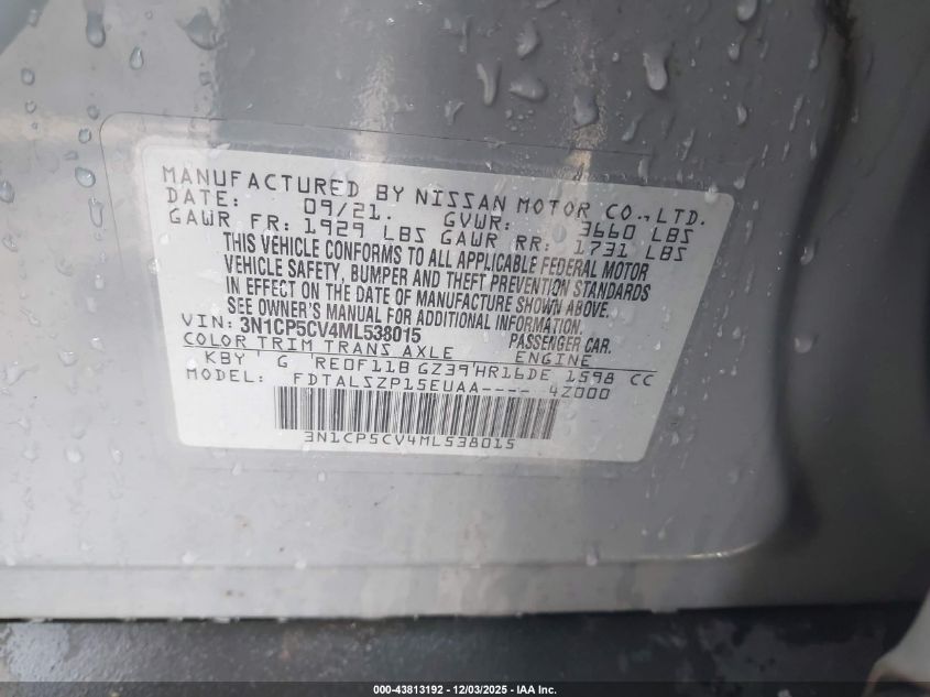 2021 NISSAN KICKS 2021 року Бензин, 1.6, Передній привід, vin - 3N1CP5CV4ML538015 з США