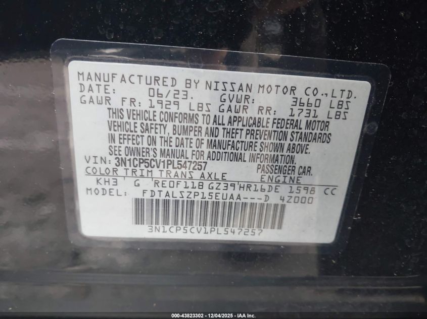 2023 NISSAN KICKS 2023 року Бензин, 1.6, Передній привід, vin - 3N1CP5CV1PL547257 з США