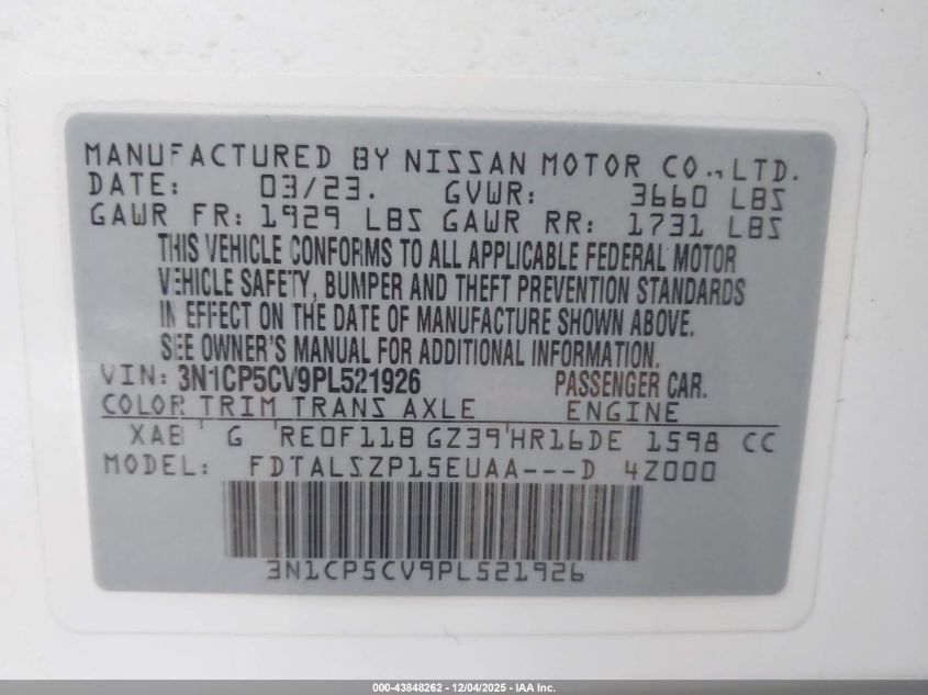 2023 NISSAN KICKS 2023 року Бензин, 1.6, Передній привід, vin - 3N1CP5CV9PL521926 з США