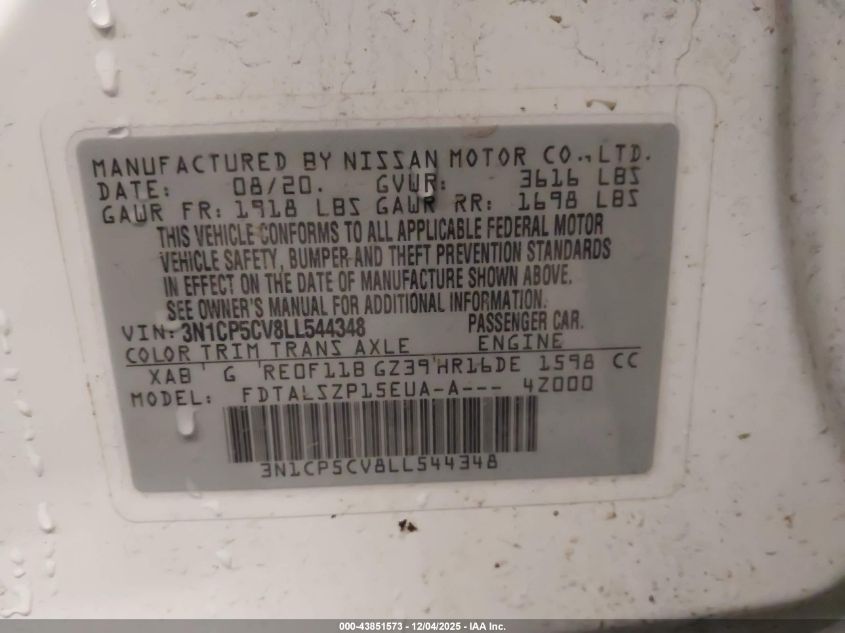 2020 NISSAN KICKS 2020 року Бензин, 1.6, Передній привід, vin - 3N1CP5CV8LL544348 з США