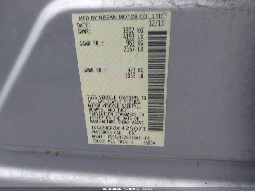 Колір СрібнийПривід Передній привідVIN 1N4AZ0CP2DC425071Стан Заводиться та їде (перевірено)Ушкодження Передня або задня AutoRIA