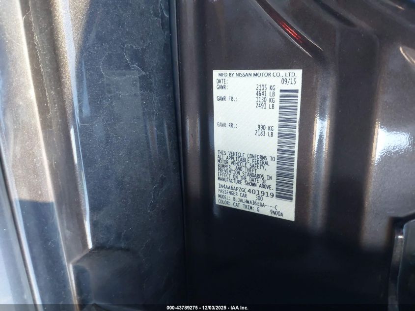 2016 NISSAN MAXIMA 2016 року Бензин, 3.5, Передній привід, vin - 1N4AA6AP2GC401919 з США