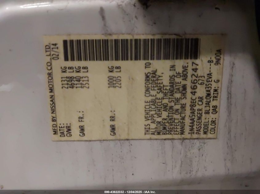 2014 NISSAN MAXIMA S