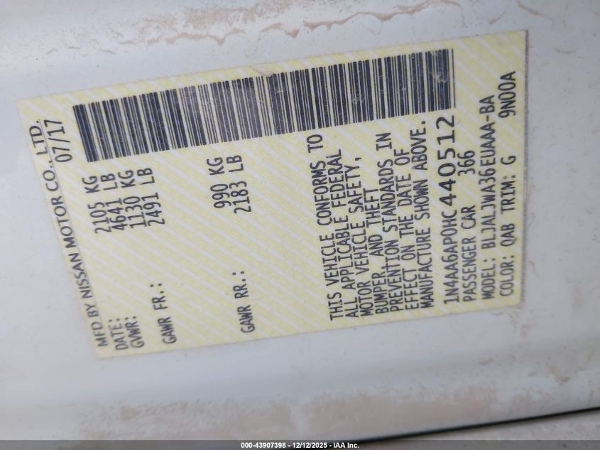 Колір ЧорнийЦиліндри 6Привід Передній привідVIN 1N4AA6AP0HC440512Стан Заводиться та їде (перевірено)Ушкодження Передня або задня AutoRIA